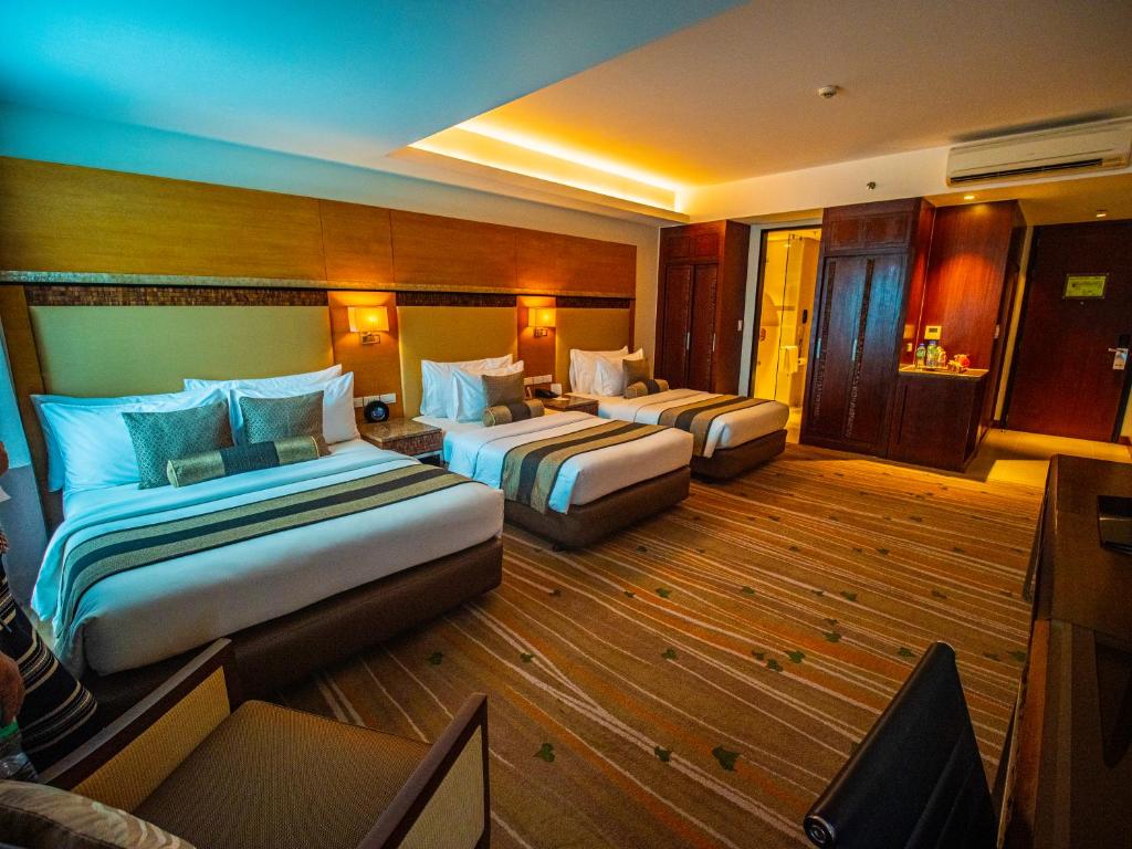 Discover a range of thoughtfully designed rooms at Best Western Plus The Ivywall Hotel - Palawan, tailored to meet the diverse needs of travelers. Choose from the Deluxe Quality Room, offering 26 square meters of space with a cozy Double Bed, or opt for the Premier Room, which provides 32 square meters and can be configured with either a Double Bed or two Single Beds, perfect for both couples and solo travelers. For those seeking extra roominess, the Suite features a spacious 56 square meters with a luxurious King Bed, a Queen, and two Single Beds, ideal for families or guests desiring a more indulgent stay. Additionally, the Family Room offers 42 square meters with flexible bedding options, accommodating families or groups comfortably.