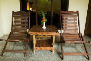 + immaculate, very clean room and surroundings, warm big shower + Friendly helpful staff + Great food and breakfast + Lovely relaxed atmosphere - only thing I could fault was that the air con was on the cold side, doesn't have a remote but I stood on a chair and turned it down (I'm sure if I told the staff they'd have done this) One of the best places we've stayed on our 4 month trip definitely recommend