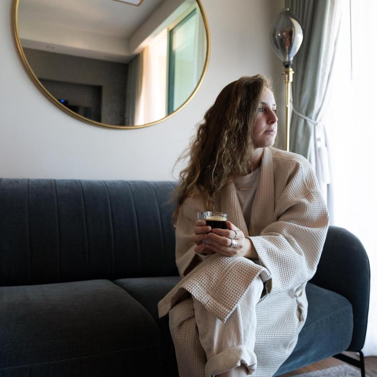 As varandas ou terraços privativos proporcionam uma vista encantadora, permitindo que os hóspedes desfrutem do ar fresco e da beleza natural ao redor. Os quartos também contam com um refrigerador, perfeito para armazenar lanches e bebidas. Para garantir uma experiência de hospedagem completa, os hóspedes encontrarão toalhas e roupas de cama de alta qualidade, além de produtos de higiene pessoal cuidadosamente selecionados. No neot golf kz place, cada detalhe é pensado para que você se sinta em casa.