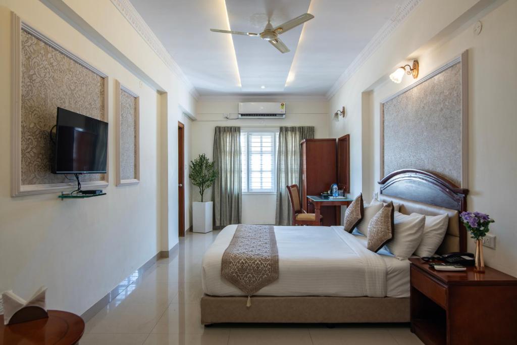 Welcome to The Chevron Orchards, a serene and luxurious 3-star hotel nestled in the bustling city of Bangalore, India. With its prime location and impeccable service, this hotel is the perfect choice for both business and leisure travelers seeking a peaceful retreat in the heart of the city.